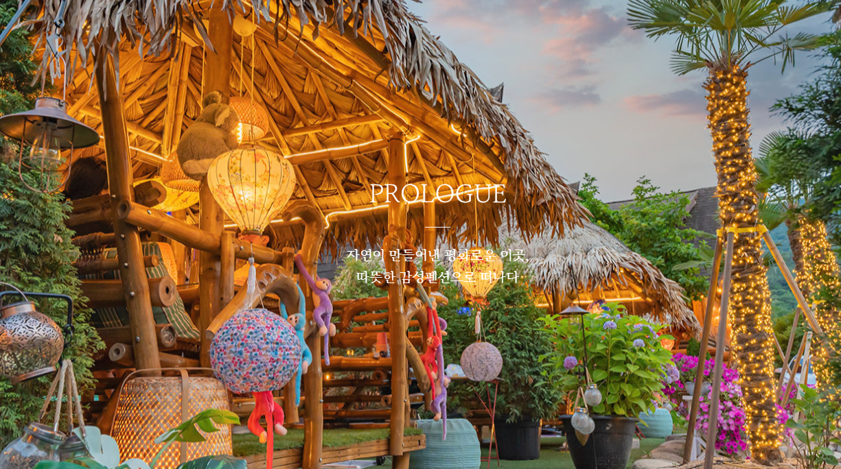 밀양 얼음골 계곡과 가까운 공기 맑은 환경에 자리하며, 동남아 휴양지 감성의 인테리어와 자연과 어우러진 공간으로 특히 사진 찍기 좋은 장소로 유명합니다.