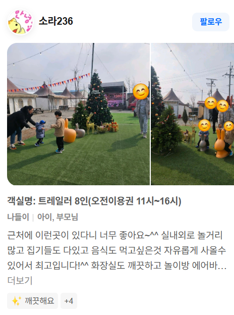 4 놀이시설 매점 옆 에어바운스 탁구장 토끼 칠면조 기러기 먹이주기 체험 가능