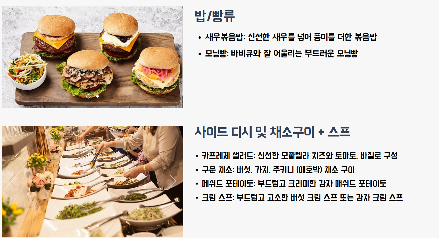 - 통돼지 바베큐, 로스트비프 등 전문 메뉴 제공