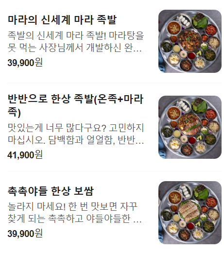 가격은 38,900원부터 시작하며, 크기에 따라 선택할 수 있습니다. 매운 족발과 마라 족발도 인기 메뉴로, 매운 음식을 좋아하는 분들에게 추천합니다.