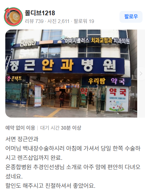 노안, 백내장, 라식, 라섹, 안성형 수술 전문 정근안과병원입니다.