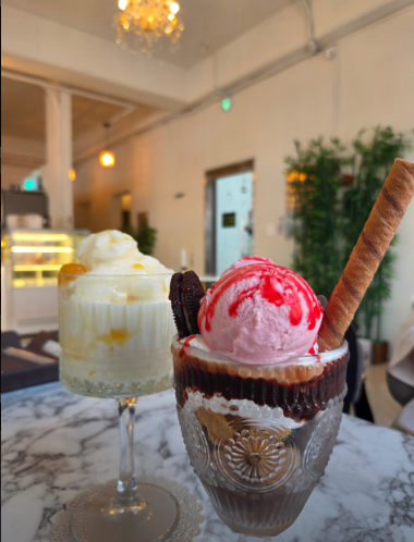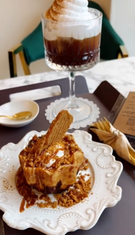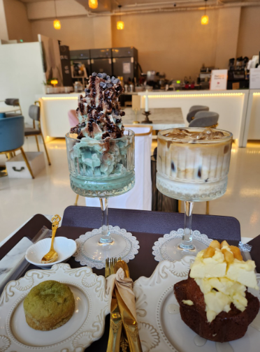특히 다른 카페와 가장 차별화되는 점은 모든 음료와 디저트가 매우 크고 럭셔리한 전용 컵과 접시에 플레이팅되어 나온다는 것입니다.