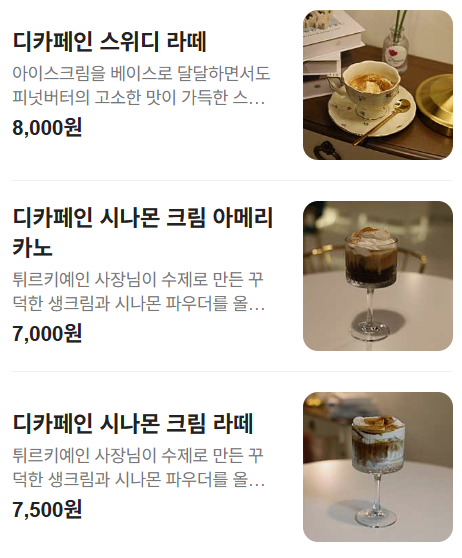 📌 **터키식 커피** - 진한 맛이 특징인 커피로, 스위디의 시그니처 음료입니다.