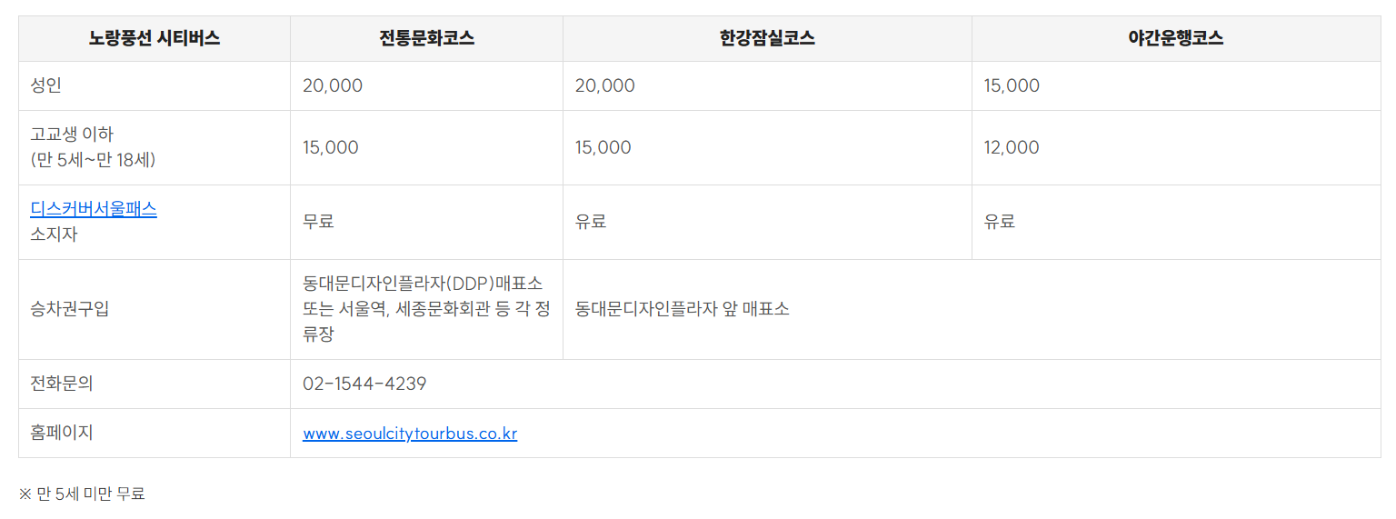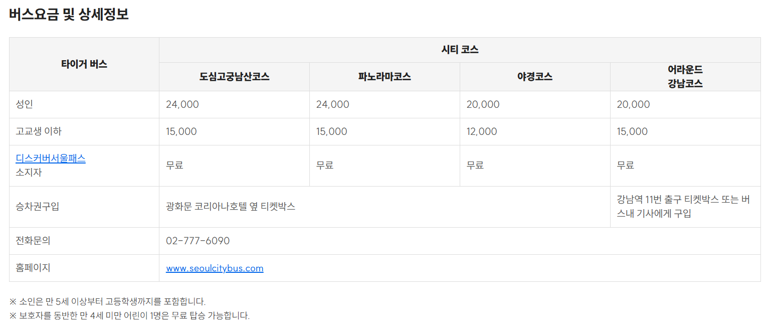 자세한 요금 정보는 서울 시티투어 버스 공식 웹사이트에서 확인할 수 있습니다.