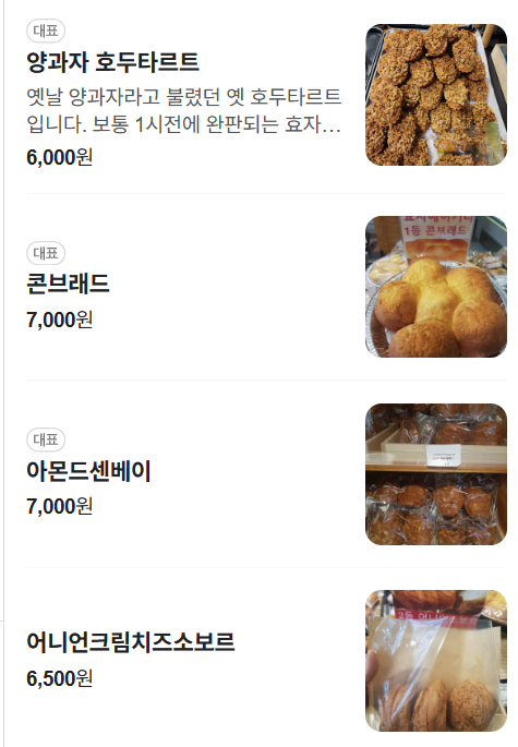 효자베이커리 대표 메뉴