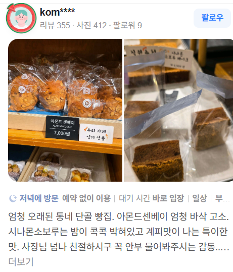 - **콘브레드** : 이곳의 시그니처 메뉴로, 부드럽고 달콤한 맛이 일품입니다. 많은 고객들이 이 빵을 추천합니다.