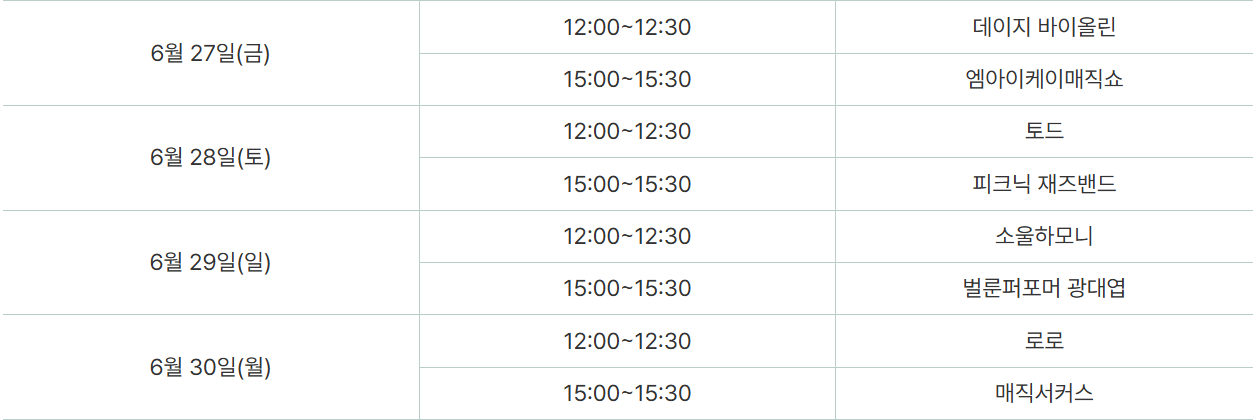 ㅇ 프로그램내용 : 정원 속에서 즐기는 버스킹, 마술공연 등