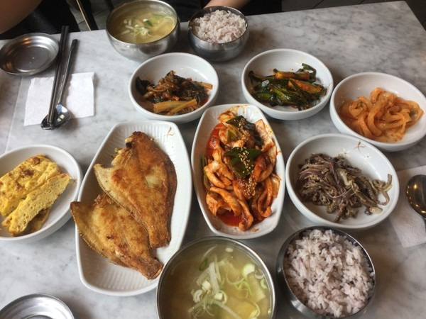 - 따뜻한 국과 반찬 몇 가지