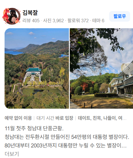 - 내비게이션에 ‘청남대’ 검색