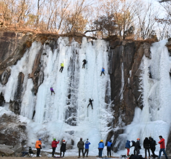 👉 자연 암벽과 인공 관리가 결합된 겨울 빙벽 체험장입니다.