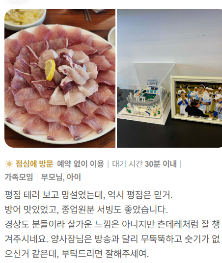 대체로 포항 여행 중 방문해볼 만한 횟집이라는 의견이 많은 편입니다.