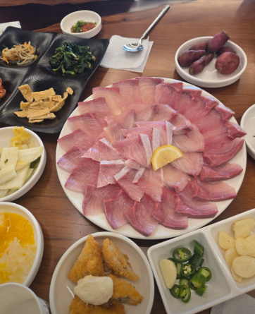 동해에서 잡힌 자연산 생선을 활용한 회 메뉴도 인기가 있습니다.