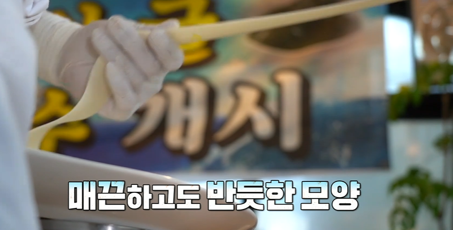 이곳은 일반 칼국수집과 달리, 넓적 수제비를 직접 반죽해 넣어주는 퍼포먼스와