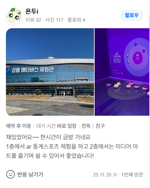 - 강릉메타버스체험관: 실내에서 즐기는 첨단 기술 체험, 가족·아이 동반 여행에 최적