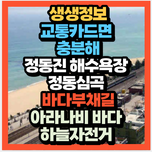 특히 정동진 해수욕장, 정동심곡 바다부채길, 아라나비 바다하늘자전거는 정동진 여행에서 빠질 수 없는 필수 코스로 꼽힙니다.