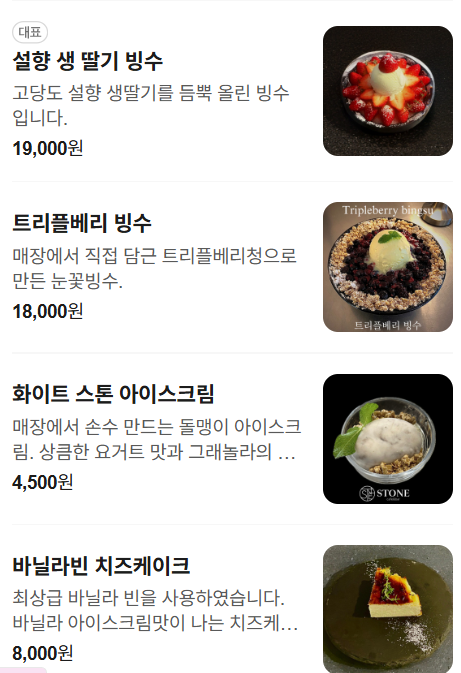 스톤 디저트카페는 디저트 메뉴를 중심으로 구성되어 있습니다.