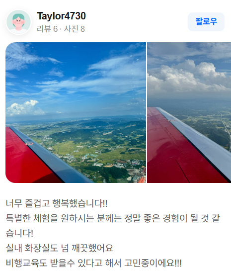- 전문 조종사 동승으로 진행되는 체험 비행 프로그램