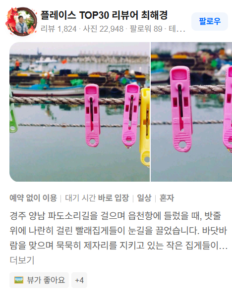 - “경주에서 자연과 역사를 동시에 즐길 수 있어 만족도가 높았습니다.”