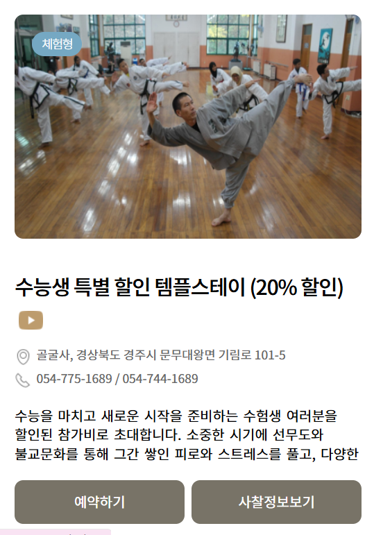 골굴사 템플스테이예약바로가기