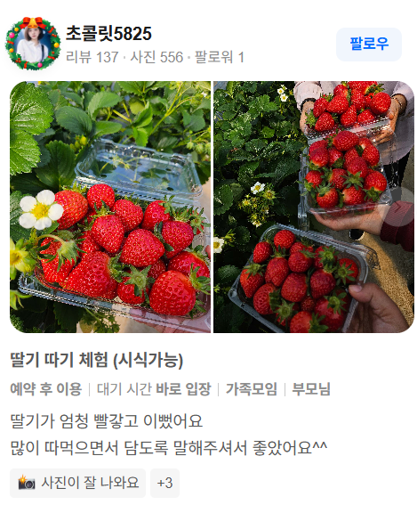 딸기 따는 재미와 시식까지 즐길 수 있어서 가족 단위 방문객에게 특히 만족도가 높다는 의견이 많습니다.
