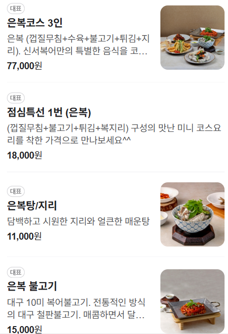 대구맛집에서 복어 요리의 다양한 맛을 경험할 수 있는 곳으로, 은복코스부터 참복 불고기까지 다양한 메뉴를 경험해 보시길 추천합니다.
