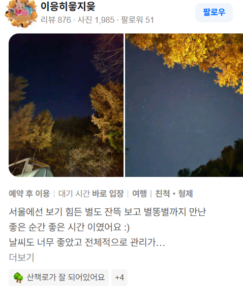 장태산자연휴양림 – 고객 리뷰 포인트