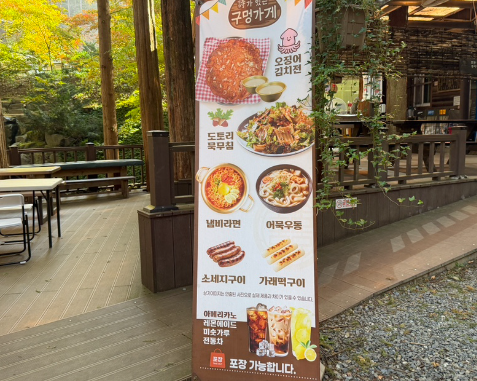 - 장태산 자연휴양림 내 유일한 매점으로, 이름이 특이하게도 **“시가 있는 구멍가게”**입니다.