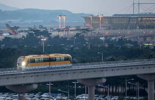 - 운행 방식: 자기부상 (Maglev) — 전자석 기반으로 차량이 레일 위 약 8 mm 떠서 움직이며, 바퀴가 없어 소음·진동·먼지 적음.