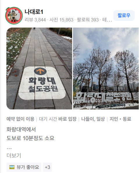 공원이 넓고 쾌적해서 산책하기에도 좋았습니다."라는 후기가 많습니다.