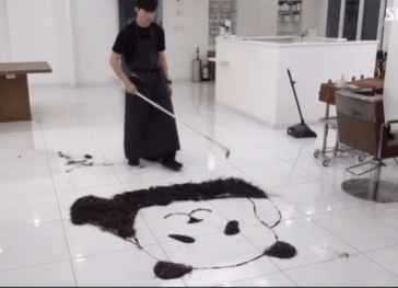 독특한 매체로 창작을 이어가고있는 이한디자이너는 잘린머리카락을 바닥위에 예술적으로 배열하여 그림을 완성하는 독창적인 작업으로 SNS에서 화제를 모으고 있습니다.