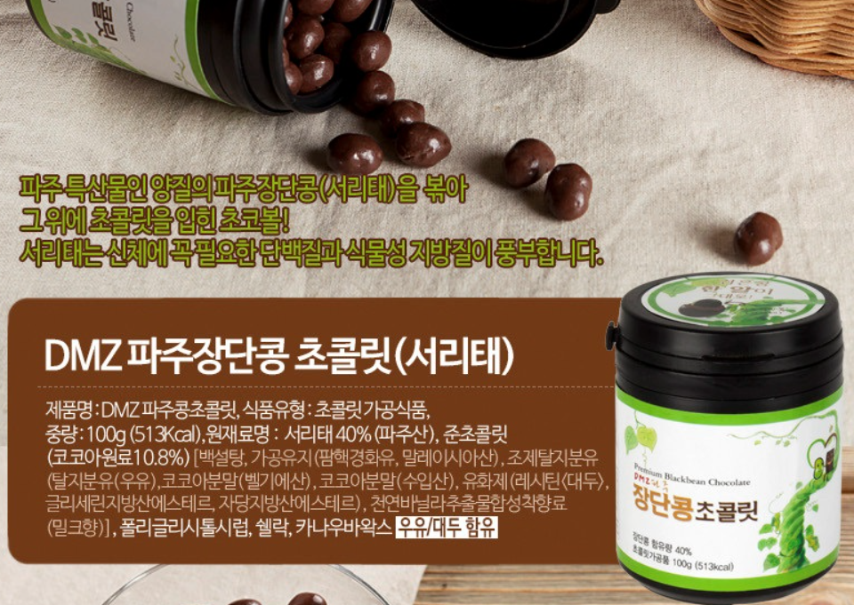 'DMZ 드림푸드'는 장단콩을 이용한 초콜릿을 선보이고 있으며, 전통 식재료와 현대적 디저트의 만남으로 새로운 맛의 경험을 제공하고 있습니다.
