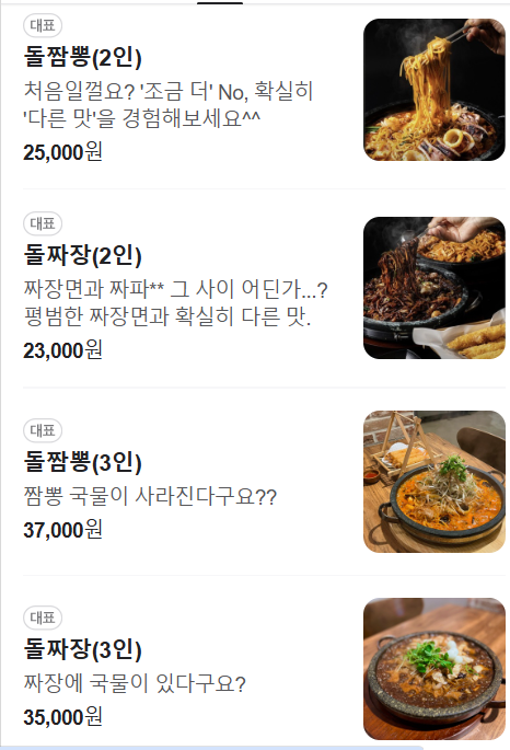 또한, 돌짬뽕 외에도 돌짜장, 수제돈탕, 새우튀김 등 다양한 메뉴가 있어 선택의 폭이 넓습니다.