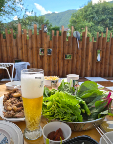 - 주변 환경: 계곡이 가까움 → 맑은 물과 자연이 어우러진 산청 내대계곡 근처. 숲속 분위기와 청정 자연이 특징.