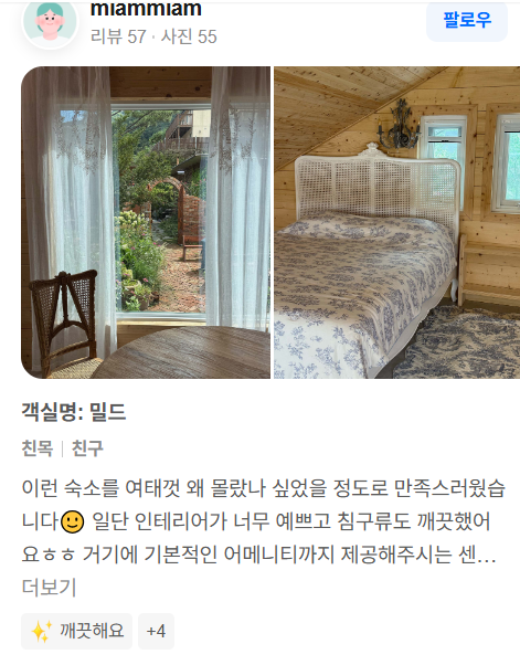 - 청결도: 숙소 상태가 매우 깨끗하다는 후기가 많고, 인테리어 소품 등이 가꾸어져 있어 “디테일에서 감성 있음”이라는 평이 많음.
