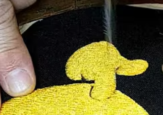 장인은 재봉틀의 바늘로 마치 연필을 쓰듯 천 위에 선을 그리고 색을 채워가며, 실을 이용해 회화적인 표현을 만들어냅니다.