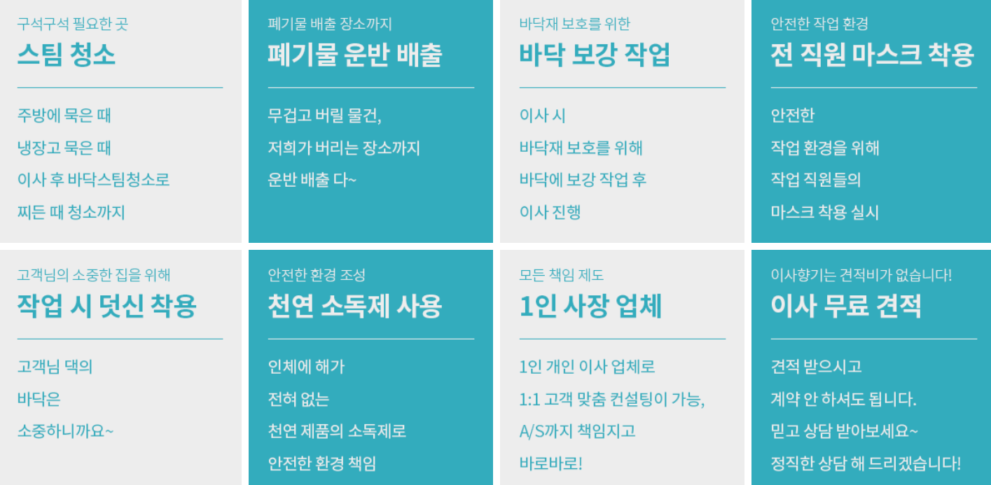 이사 후에도 청소 서비스와 같은 다양한 부가 서비스를 통해, 고객의 편의를 더욱 높여드립니다.