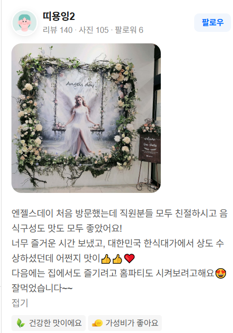 엔젤스데이는 일반 식사 뷔페뿐 아니라, 돌잔치·스몰웨딩·행사 케이터링 등 단체·가족 행사에 최적화된 메뉴와 공간을 함께 제공하는 것이 큰 특징입니다.