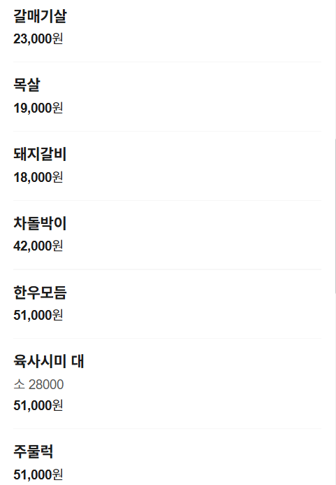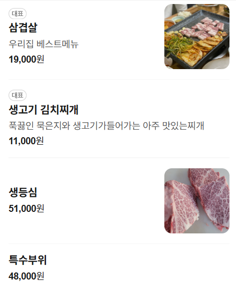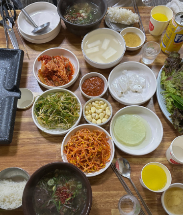 삼겹살과 김치찌개 그리고 등심이 베스트이며 고기 주문 시 간과 천엽이 서비스로 나오며 선짓국은 무한리필이 가능하여 고기를 다 드신 후 볶아 먹는 볶음밥이 특히 인기입니다.