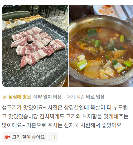 김치찌개에 적합한 숙성 김치를 사용해 깊고 진한 맛이 특징입니다. - 고기와 육수의 조화