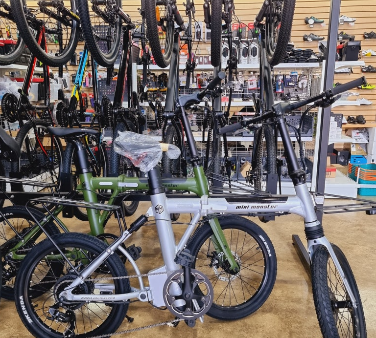 특히 눈에 띄는 제품 중 하나는 '미니 몬스터'라는 이름의 접이식 자전거입니다.