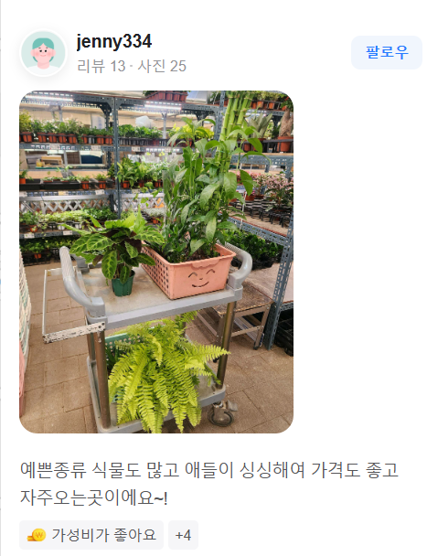 많은 고객들이 매장의 청결함과 친절한 서비스에 대해 칭찬하고 있으며, 특히 신선한 꽃과 식물의 품질에 만족하고 있습니다.