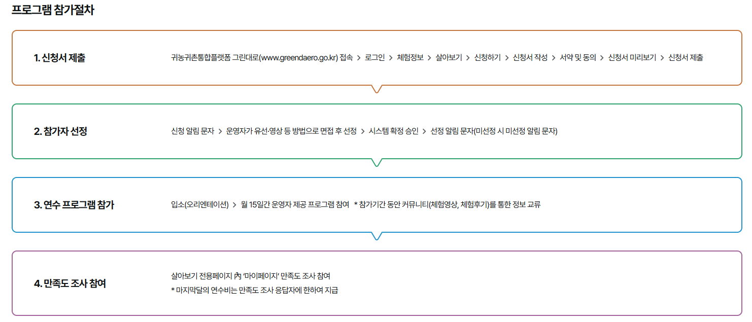 📌 최소 1개월부터 최장 8개월까지 귀농귀촌에 필요한 프로그램 제공