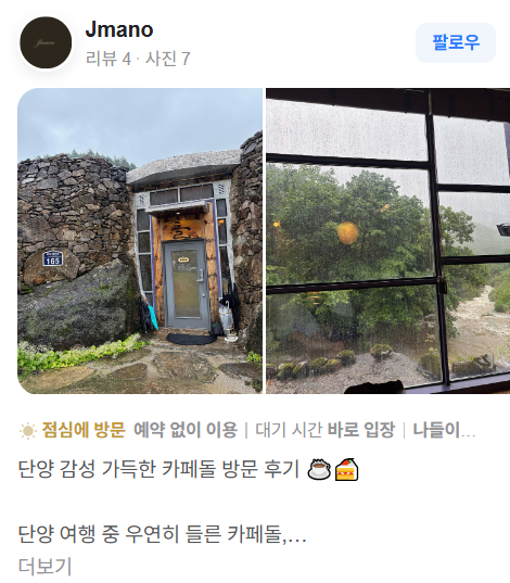 ✅ 위치: 충북 단양군 대강면 선암계곡로 165 카페돌