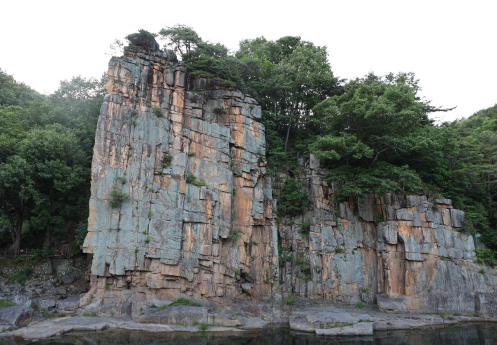 높이는 약 50m이며 기암 아래는 남조천이 흐르며 소(沼)를 이루고 있어 아름다운 풍치를 더해주는 곳입니다.