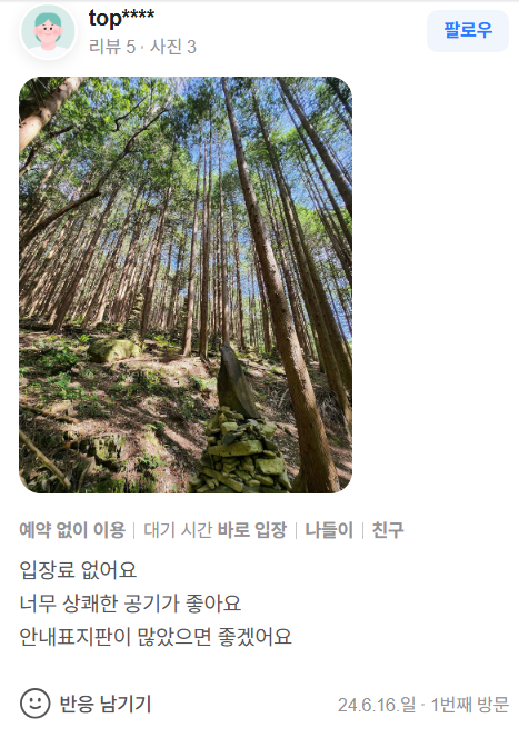 방문객들은 상관편백숲의 청정한 공기와 아름다운 경치에 대해 극찬을 아끼지 않습니다.
