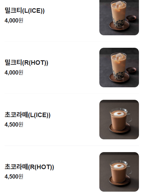 로스팅, 더치커피, 수제차 등 다양한 메뉴가 준비되어있습니다.