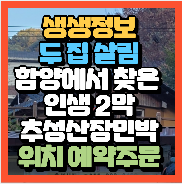👉 자연을 벗 삼아 쉬고 싶은 분들께 경남 함양 추성산장민박은 좋은 선택이 될 수 있습니다.