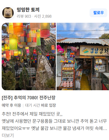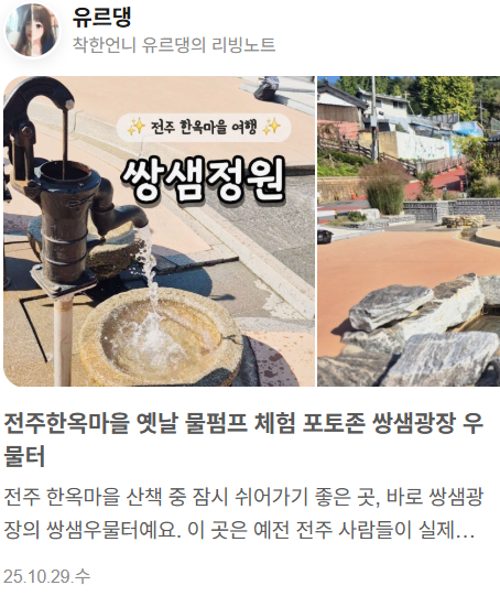 전주 여행 중 잠시 쉬어갈 공간이나, 가볍게 산책하며 전주의 일상을 느끼고 싶으시다면 전주난장과 쌍샘광장 코스를 일정에 함께 포함해 보셔도 좋은 선택이 될 것입니다.