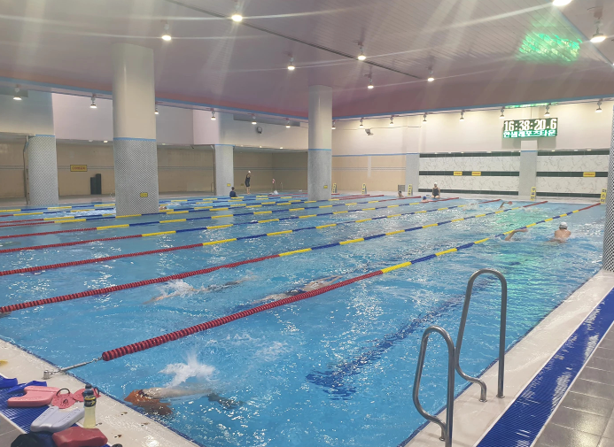 ✅ 이곳의 수영장은 25m 길이의 정제염해수풀로, 9개의 레인이 있어 다양한 수영 프로그램이 진행됩니다.
