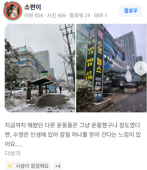"물속에서 운동하니 관절에 부담이 없어서 좋았어요!"라는 리뷰가 많으며, "음악에 맞춰 춤추는 느낌이 정말 즐거웠습니다!"라는 의견도 자주 들을 수 있습니다.